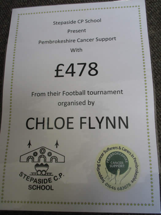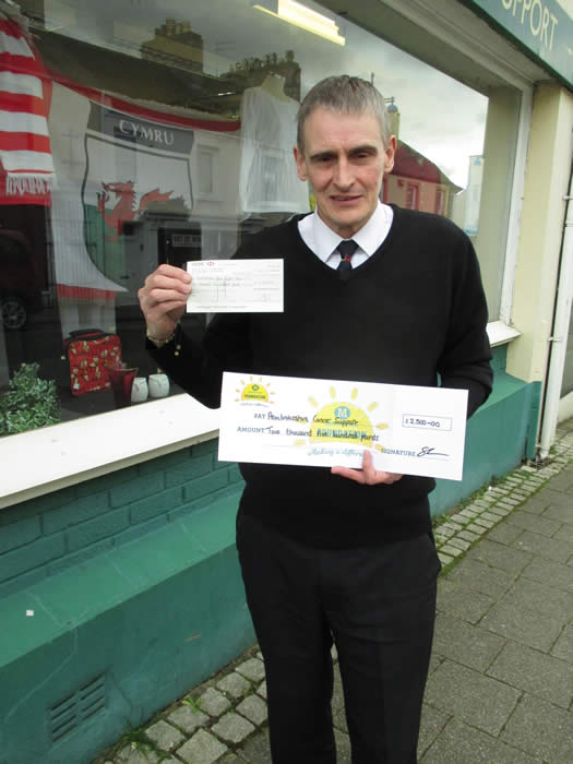 The Club committee decided to donate the money raised to the Pembrokeshire Cancer Support in Queen Street, Pembroke Dock to keep it for a charity that is local.