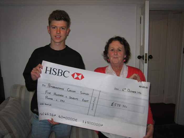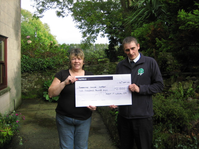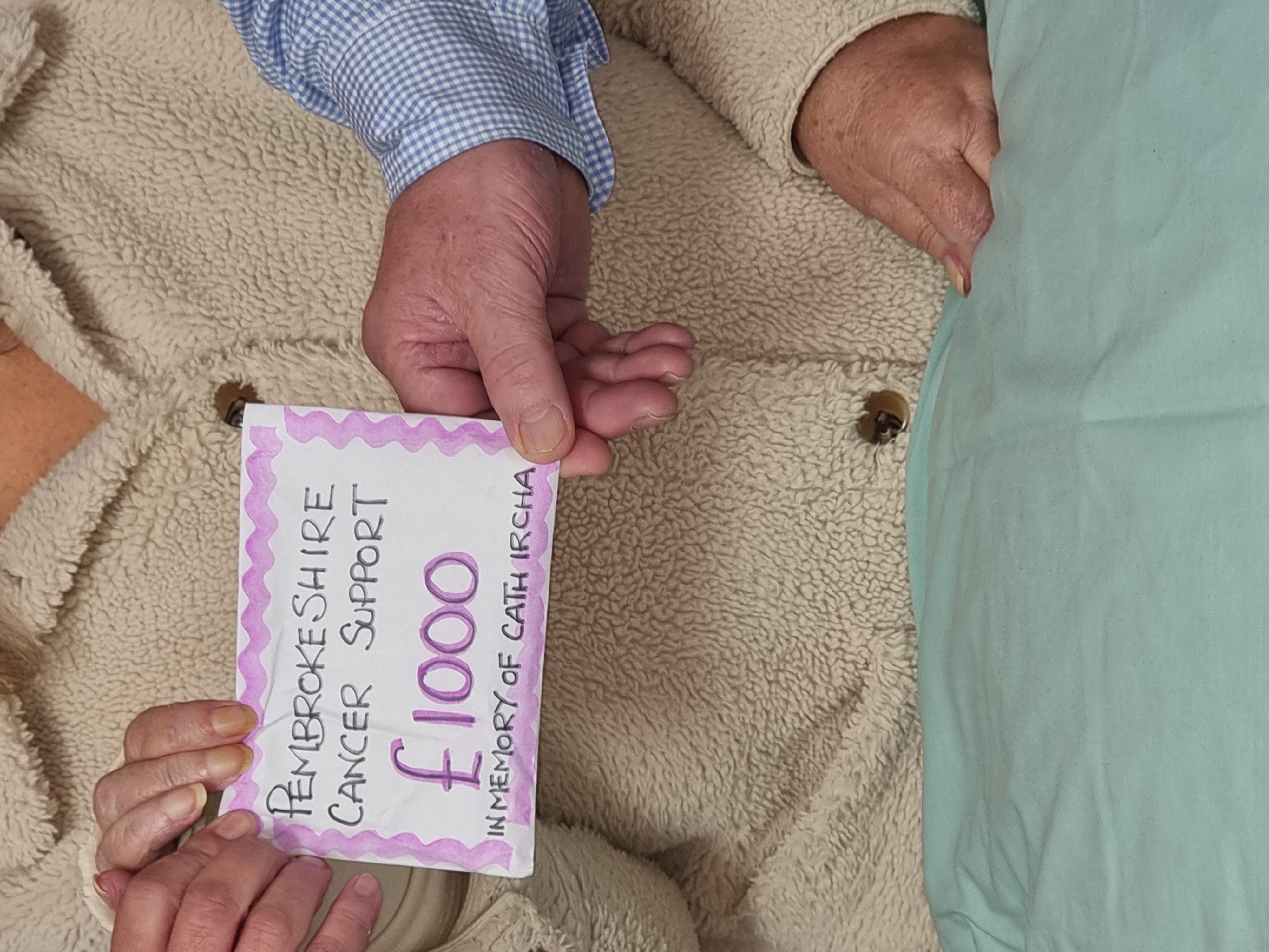 Pembrokeshire Cancer Support Manager Lyn Neville said,” We were delighted to receive the donation, this will go towards much needed cancer support and services to local people.”