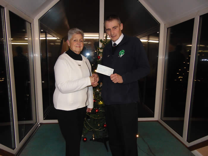 MRS SUE SHAW (HAPPY BAND OF TRAVELLERS) CHEQUE PRESENTATION - MONDAY 17th DECEMBER, 2012