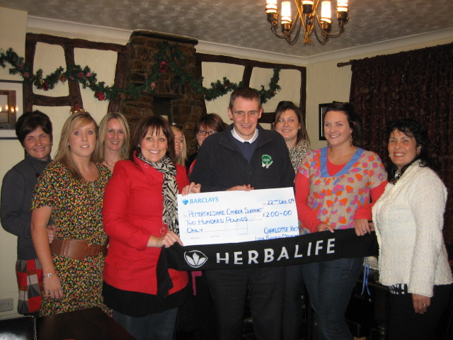 The local ladies from Herbalife have very generously donated £200 to Pembrokeshire Cancer Support through their fundraising efforts. Lyn attended a presentation on Tuesday 22nd December, 2009 at the Brewery Inn, Cosheston. Herbalife are at the forefront of nutritional and weight management and more information on Herbalife can be found by following the link on our Links Page. A big Thank You to all the Ladies from Herbalife, your support and generosity is very much appreciated.