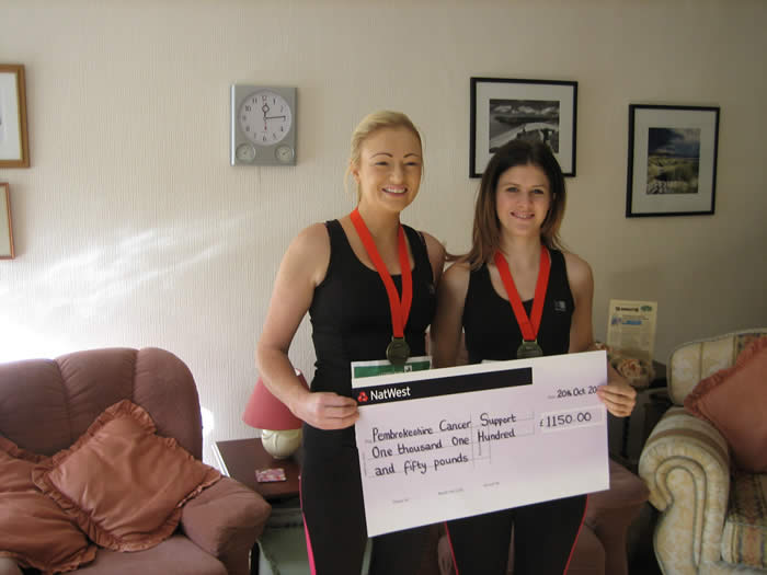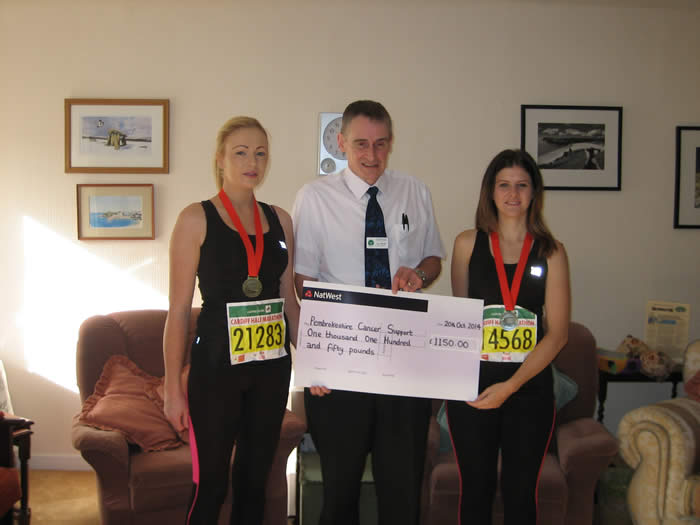 On Sunday 19th October, Miss Lisa Wells and Miss Heidi Smith came to the Support Centre to present a cheque to the Charity. The fantastic amount of £1150 was raised following the girls taking part in the Cardiff Half Marathon on Sunday 5th... October. They ran the course together in a brilliant 2 hours and 32 minutes. We would like to thank them both for their help and support which is very much appreciated by a very small Cancer Charity. This support enable us to help more people in need in Pembrokeshire. Thank You, Lyn