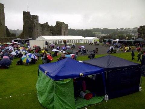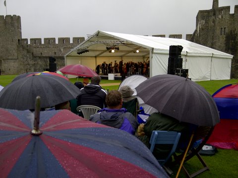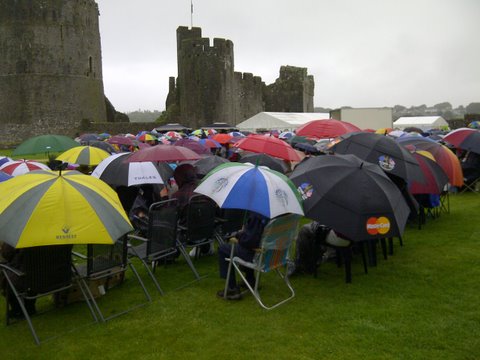 Proms in the Castle went ahead on Saturday 3rd September and as you can see below turned out to be very wet !! This did not dampen the enthusiasm of the crowd who turned out for the event. Special Thanks must go to South Hook LNG who sponsored the whole event, Phil Thompson (representing Macmillan) who organised the event and Jon Williams who runs the Castle. Pembrokeshire Cancer Support was the nominated charity of South Hook LNG. As you can see from the photograph above, all the meetings to arrange the event were held in bright sunshine !!