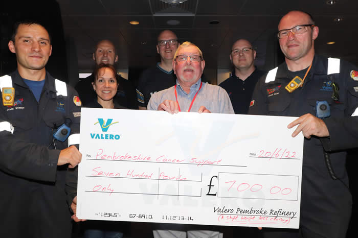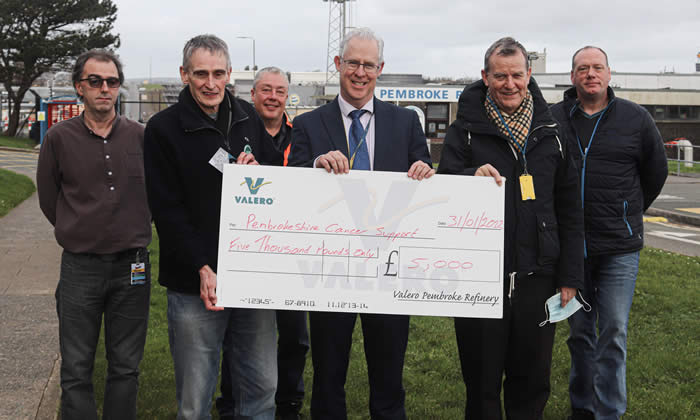 Charity of the year announced - A Pembrokeshire charity that aims to ‘empower its users through education and support’ has been chosen as Valero Pembroke Refinery’s charity of the year.Following a site wide vote, Pembrokeshire Cancer Support will join forces with the refinery’s workforce to raise funds for the group.The group was formed in 1991 by Doreen Wormell who felt that as a cancer sufferer there was a gap between the patient being diagnosed and being able to come to terms with the fact they have the condition.Over the years and with the help of other sufferers the group has grown from meeting twice monthly to having a dedicated facility in Pembroke Dock that allows them to hold meetings, one to one contact and group relaxation therapies.The charity’s co-ordinator Lyn Neville said they are thrilled to have been chosen:“Being named as Valero’s charity of the year was a great way to start the year after what has been a difficult couple of years,” he said. “For obvious reasons we haven’t been able to do as much as we would have liked over the past two years but hopefully, fingers crossed, we can provide a fuller service soon.”Valero’s Public Affairs Manager Stephen Thornton added:“Pembrokeshire Cancer Support understand what those with the condition are going through. This not only helps the individual but their family and friends too and we’re delighted to be able to team up with Pembrokeshire Cancer Support for the next 12 months.”Caption: Valero’s Public Affairs manager Stephen Thornton presents Pembrokeshire Cancer Support representatives Lyn Neville (left) and Mr Ian Jones (right) with a cheque for £5,000 after they were named as our charity of the year for 2022.