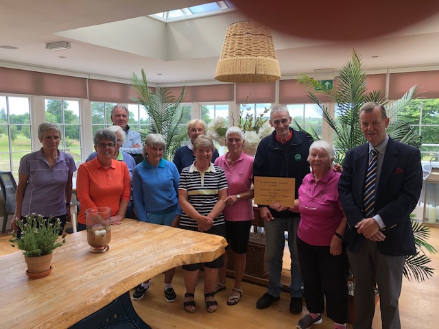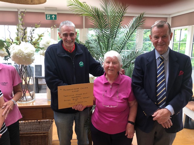 On Saturday, 25th May, thirty-four members turned up in the sunshine at Trefloyne Golf Course to play for the annual Steve Derrick Trophy. This was another successful event, raising £440.00 for the local charity, Pembrokeshire Cancer Support (www.pembrokeshirecancersupport.org.uk ) and a cheque was presented to the charity’s representative, Marian Cooney-Dance. Congratulations to Jane Meyrick, who won the Ladies’ Trophy and to Derek Campbell who won the Men’s Trophy. There were excellent scores and good cheer all round.