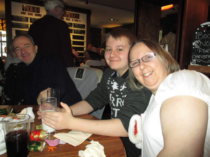 The members Christmas Dinner was held at the Coach House Hotel in Pembroke on Wednesday 7th December. It was an excellent chance for everyone to get together from the far flung corners of Pembrokeshire. Our Support Workers were on hand to make sure everyone had a good time and it was a great chance to catch up. Everyone loved the food and a few "doggy bags" were taken home !!