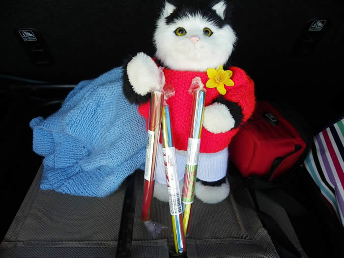 Elly and her Ward 10 Flag had a "Go to work with Dad day!!" today (must be the school holidays!!). Elly went along with Dad (Lyn, who is the Charity Coordinator) to the Pembrokeshire Cancer Support Charity in Pembroke Dock. Elly had a morning of Card-Making and then had a photograph with some of the ladies after the Relaxation Session at the Support Centre. Elly had a great time watched over by Derryn (Support Worker) and Lisa although there was a lot of Glitter involved!!!! She also loved the stairlift!! Elly also met "Dave Cat" the unofficial Charity Mascot!! If you know someone with Cancer or recovering from Cancer or someone who cares for a Cancer Sufferer they can come to the Support Centre in Queen Street, Pembroke Dock. Elly's Appeal for Ward 10 (Cancer Ward) at Withybush Hospital has raised over £165,000 so far.
