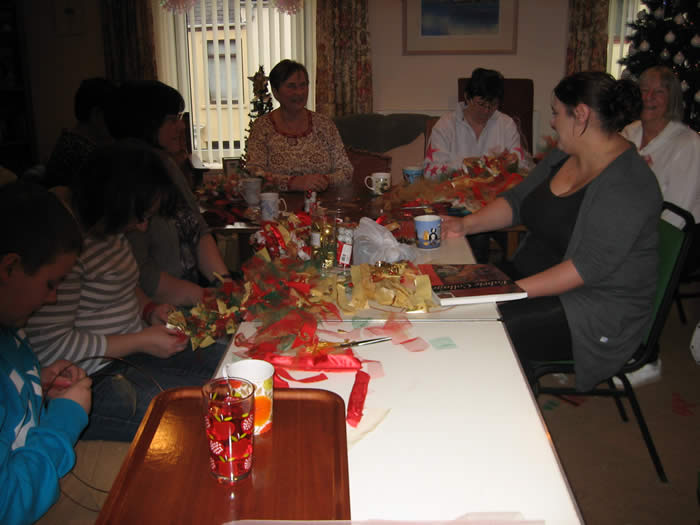On the last Friday of November Mia came along to the Support Centre to give a Talk and Demonstration on making Christmas Wreaths out of material. Everyone who attended had a great time and very much enjoyed the event.