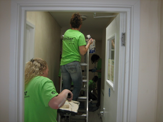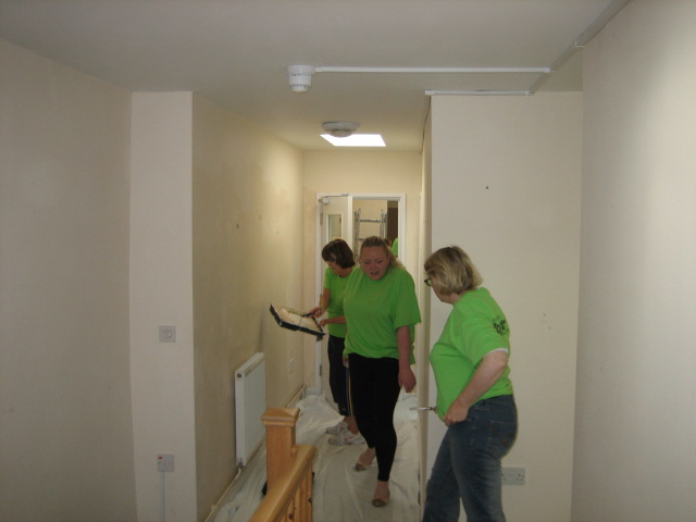 We would very much like to say a "Big Thank You" to a team of twelve ladies from the Workforce Skills and Care and Childcare Department of Pembrokeshire College. They volunteered to come and paint the Hall, Stairs and Landing at the Support Centre as part of the "Make A Difference Day" which takes place annually and is undertaken by College Staff to help local Charities and Voluntary Organisations. The team of ladies were..... Lucy Kendall (Team Leader), Jennie Thomas, Lisa Mills, Beth Griffiths, Theresa Hannon, Michelle Groves, Jen Jayne, Sharon Tinnauche, Wendy Williams, Michaela Harper, Sara Martin and Denise Harris. As volunteers they pay all their own costs to get to the chosen project (some came from as far as Ammanford) and no cost falls on the College. It is all about working as a Team and providing a service for the community for the whole day.