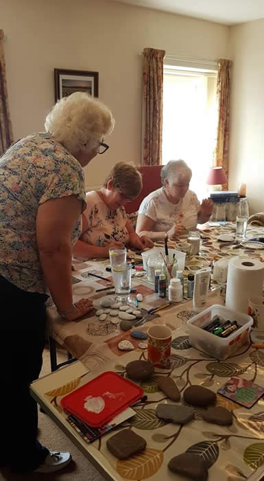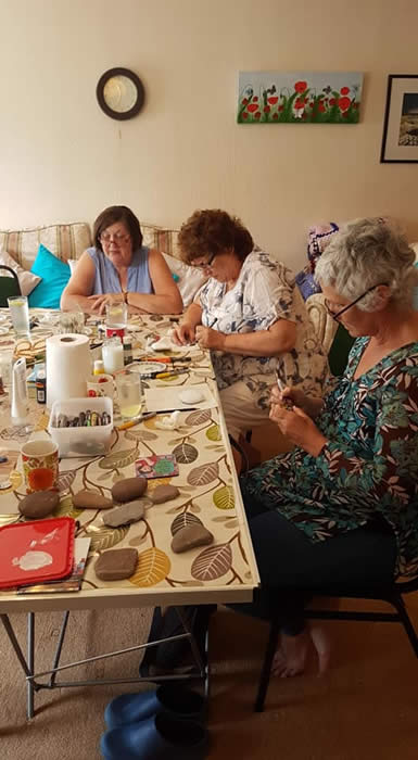 An entertaining morning at the Pembrokeshire Cancer Support Card & Craft Group. Today there was much fun and laughter and painting of pebbles!! Everyone had a great time and much cake was consumed!!!